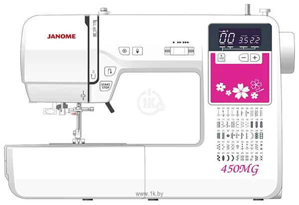 Janome 450MGДорогая, но очень качественная и функциональная домашняя модель с удобным экраном и мощным мотором. Не рекомендуется к покупке тем, кто швейную машинку видит впервые. Особенности: