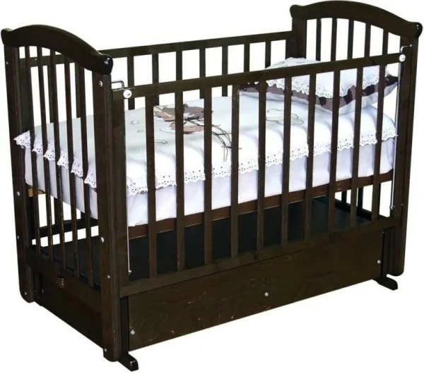 Деревянные кроватки из сосны покупать не рекомендуется — это не слишком прочное дерево, которое с течением времени к тому же может рассохнуться.