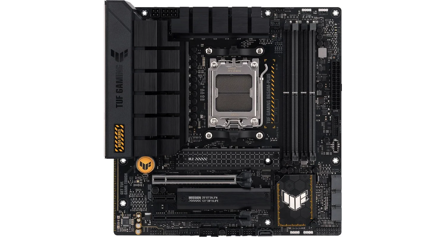 Материнская плата формата MicroATX с чипсетом AMD B650, предназначенная для процессоров Ryzen с сокетом AM5. Она поддерживает до 128 ГБ оперативной памяти DDR5 с частотой до 6400 МГц, имеет два слота PCIe 4.0 16х для видеокарты и один слот PCIe 4.0 1х для других устройств. Для хранения данных предусмотрены четыре порта SATA 3.0 и два слота M.2. На задней панели расположены восемь USB-портов, HDMI и DisplayPort для подключения мониторов, аудиоразъемы, а также разъем Ethernet 2.5 Гбит/с для высокоскоростного подключения к сети. Плата оснащена усиленной зоной VRM с массивными радиаторами для стабильной работы под нагрузкой, а ее надежность подтверждена серией тестов в рамках стандарта TUF. Подойдет для геймеров, которые хотят получить современную платформу с поддержкой DDR5, PCIe 5.0 и надежным охлаждением.