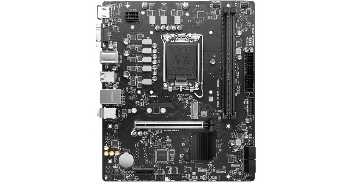 Бюджетная видеокарта для компьютеров, предназначенных для простых задач, вроде работы с документами и серфинга в интернете, но с небольшим заделом для нетребовательных игр. Работает на чипсете Intel H610, имеет уменьшенный формат MicroATX. Поддерживает до двух модулей DDR4 с частотой до 3200 МГц. Для видеокарт предусмотрен слот PCIe 4.0 x16, а для дополнительных плат – слот PCIe 3.0 x1. Здесь есть один слот M.2 Gen3 для высокоскоростных SSD и 4 разъема SATA 3.0, а также 4 USB 2.0 и 2 USB 3.2 Gen 1 порта, гигабитный Ethernet-разъем и аудиосистема с поддержкой 7.1-канального звука.