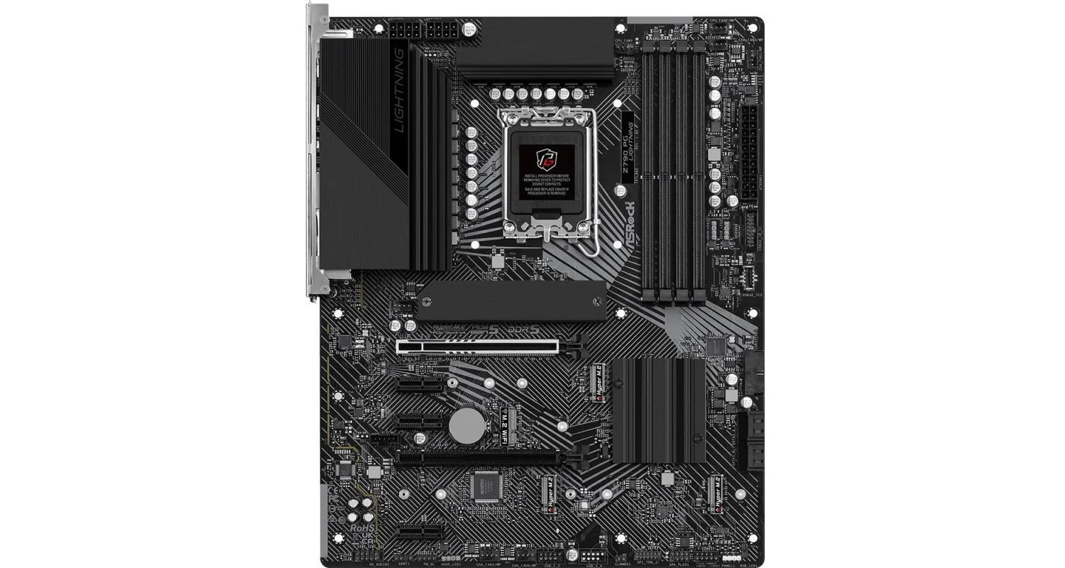 ASRock Z790 PG Lightning– это материнская плата с форм-фактором ATX, основанная на чипсете Intel Z790. Она поддерживает процессоры Intel Core 12-го, 13-го и 14-го поколений, работающие на сокете LGA1700. Для оперативной памяти доступны четыре слота DDR5 с максимальной частотой до 7200 МГц и поддержкой до 192 ГБ. Плата оснащена двумя слотами PCIe x16, один из которых соответствует стандарту PCIe 5.0 для установки мощных видеокарт следующего поколения. Для накопителей предусмотрено четыре слота M.2 и четыре порта SATA 3.0. Сетевые возможности представлены Ethernet-чипом Dragon с пропускной способностью 2.5 Гбит/с. На задней панели расположены порты USB 3.2 Gen2x2, HDMI, а также аудиовыходы с поддержкой Realtek ALC897 для 7.1-канального звука. Набор RGB-разъемов с поддержкой Polychrome RGB позволяет настроить подсветку. Благодаря радиаторам для охлаждения системы питания VRM с конфигурацией 14+1+1 фаз, что делает её отличным выбором для игровых и рабочих систем.