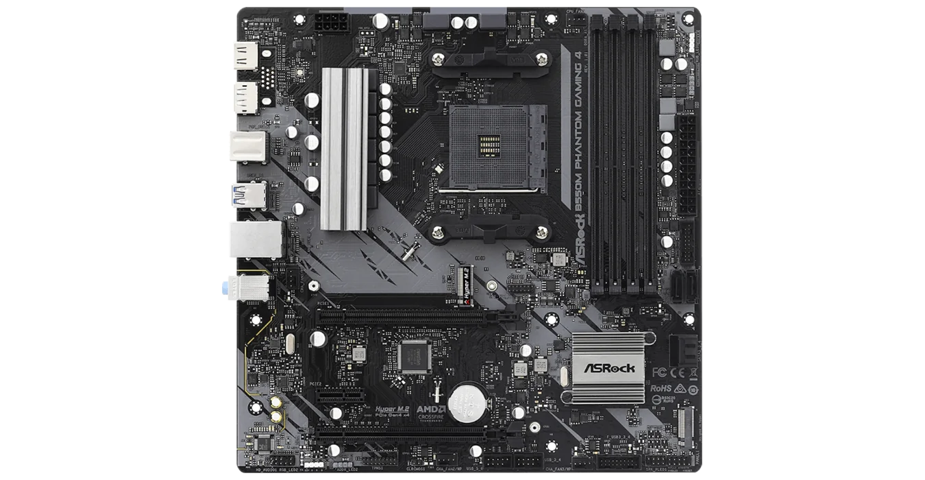 Компактная материнская плата формата MicroATX на базе чипсета AMD B550, предназначенная для процессоров Ryzen с сокетом AM4. Она поддерживает до 128 ГБ оперативной памяти DDR4 с частотой до 4733 МГц, оснащена двумя слотами PCIe 4.0 16х для видеокарт и двумя слотами M.2 для накопителей. Для подключения периферии на задней панели предусмотрены шесть USB (4 – USB 3.2 Gen1, 2 – USB 2.0), HDMI и DisplayPort. Поддержка CrossFire позволяет установить несколько видеокарт. Эта модель отлично подойдет для сборок начального и среднего уровня.