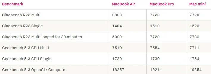 В этой таблице вы можете увидеть результаты тестирования новых компьютеров Apple с чипом M1. Отдельно отметим 38 fps в Shadow of the Tomb Raider — это ожидаемый показатель для недорогого геймерского лаптопа с дискретной видеокартой, но для тоненького ультрабука это просто потрясающе!